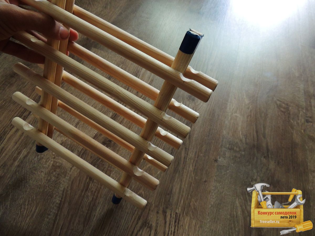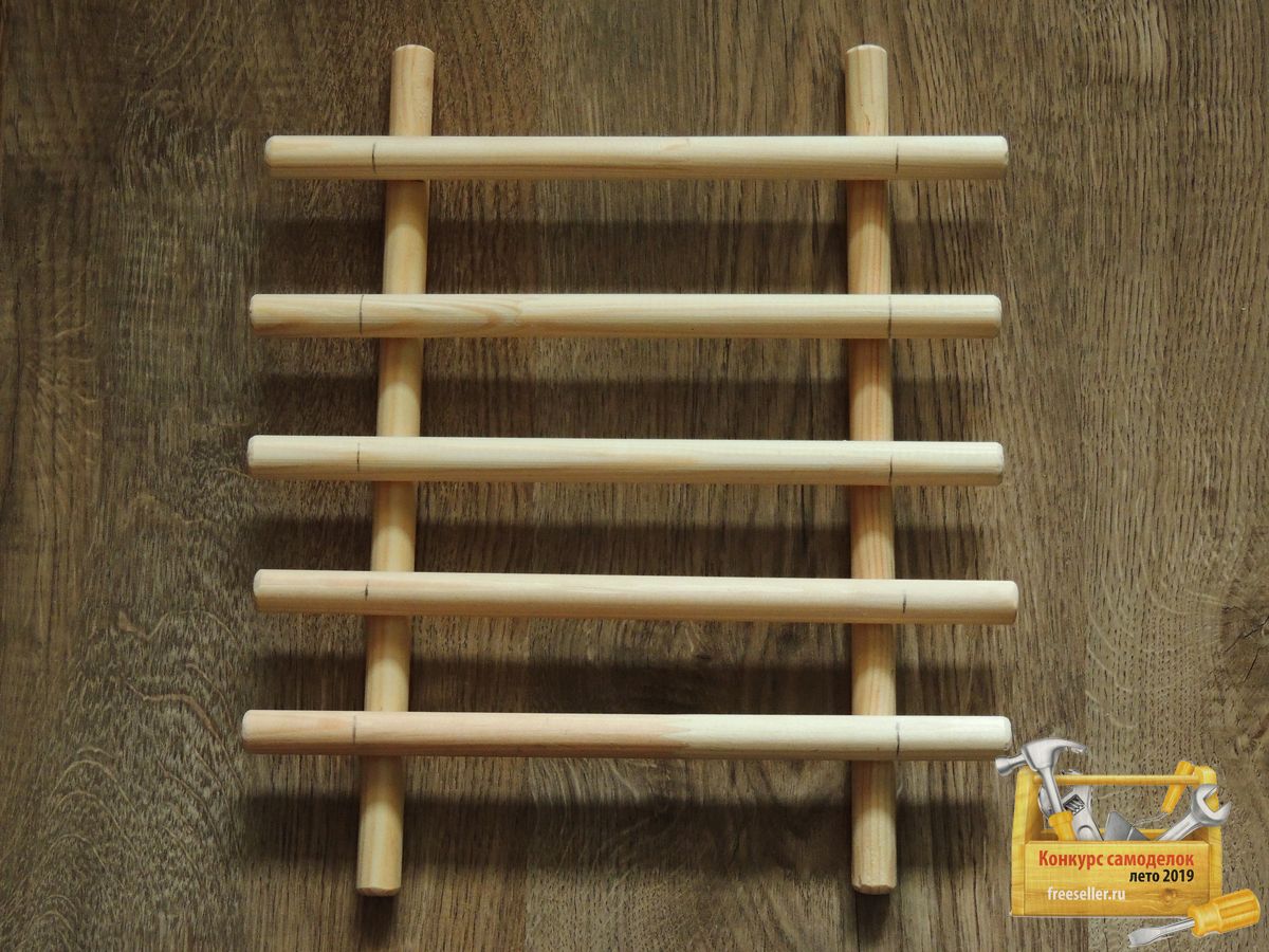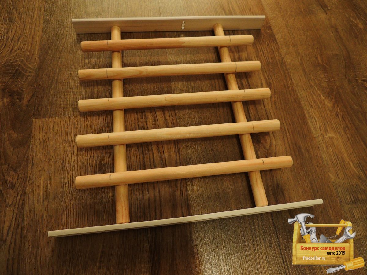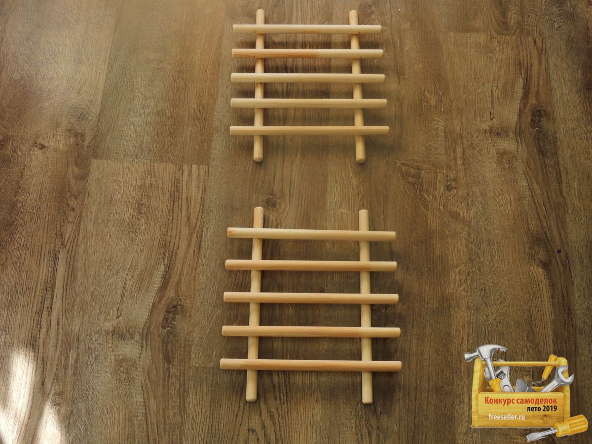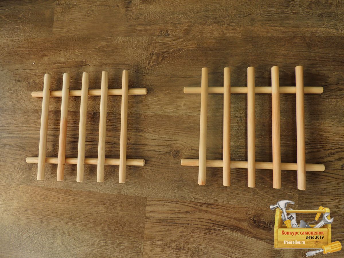 Далее при помощи столярного клея зафиксировал рейки. Изготовил две таких решетки.