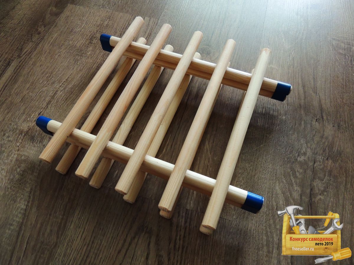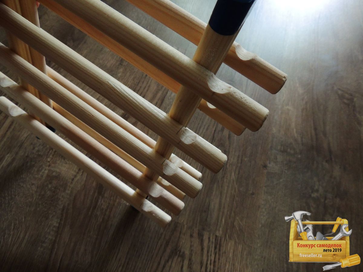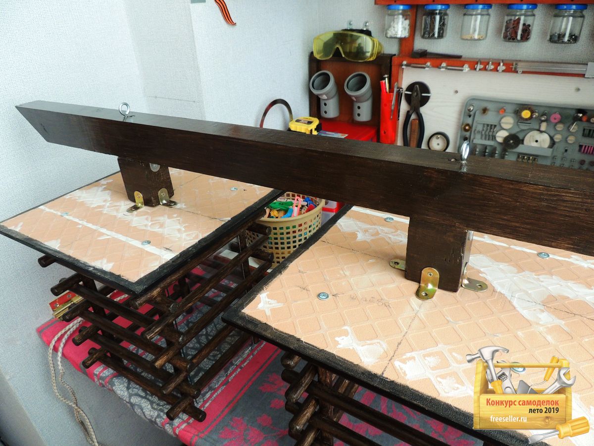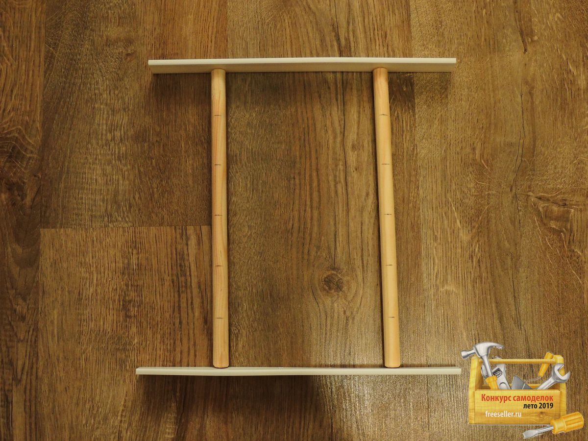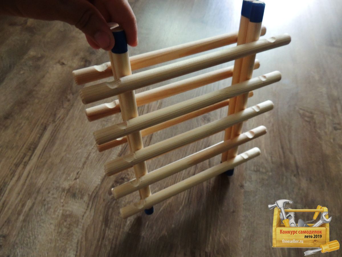 Далее при помощи столярного клея зафиксировал рейки. Изготовил две таких решетки.