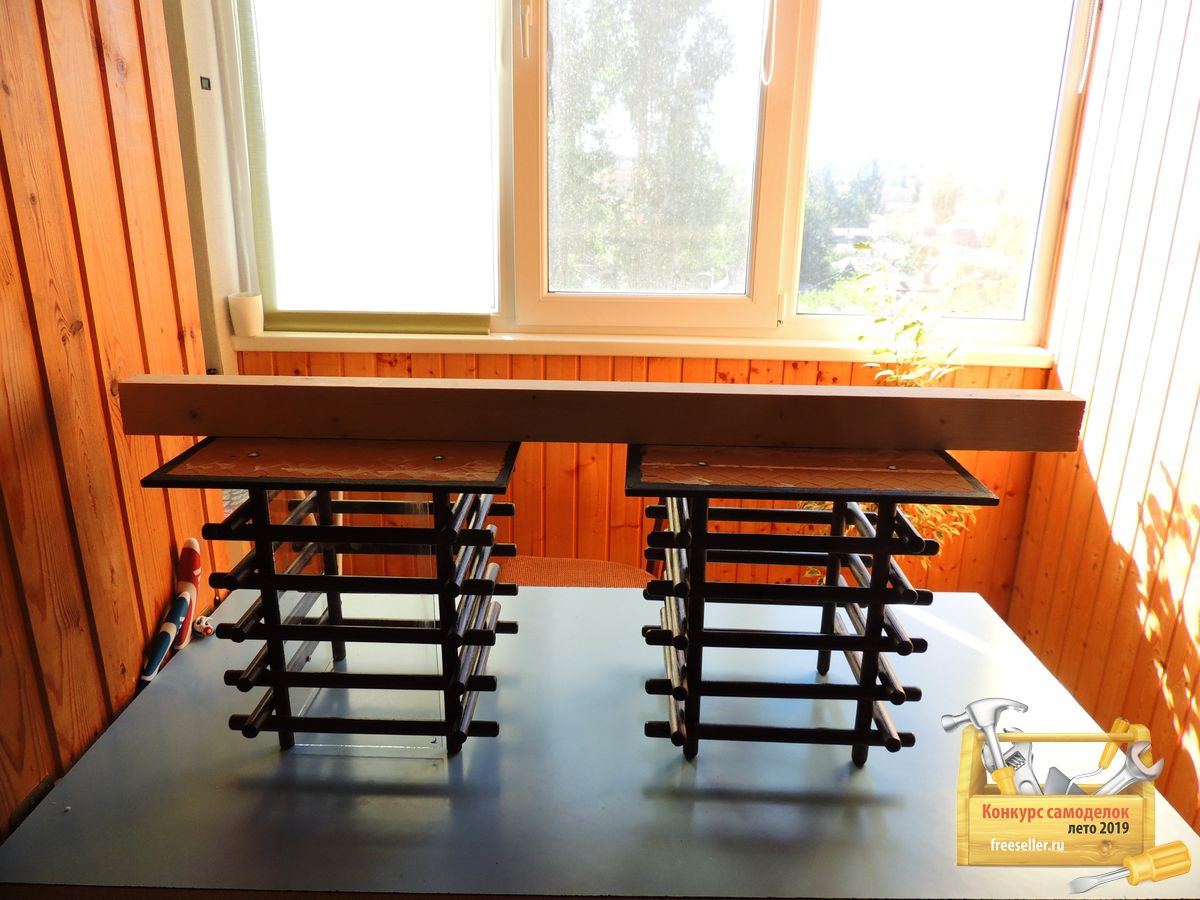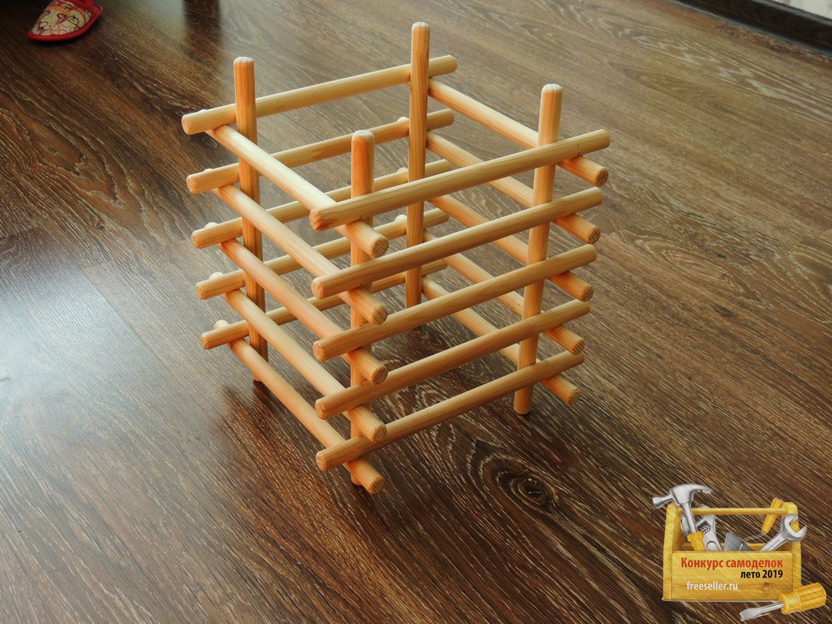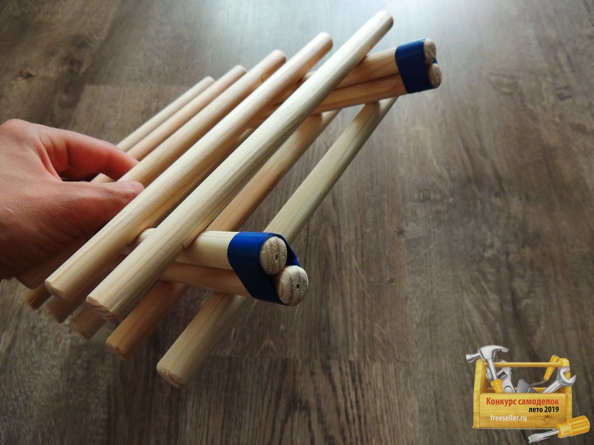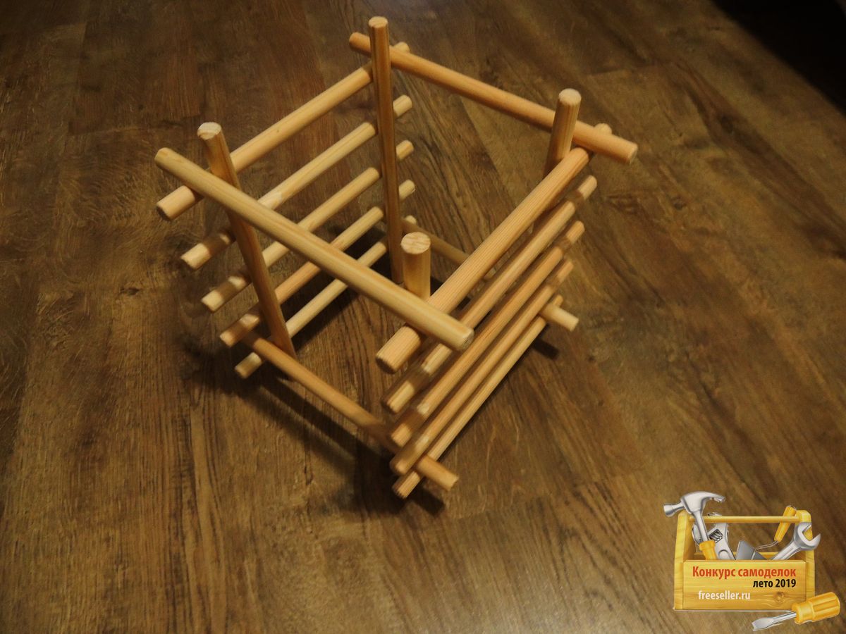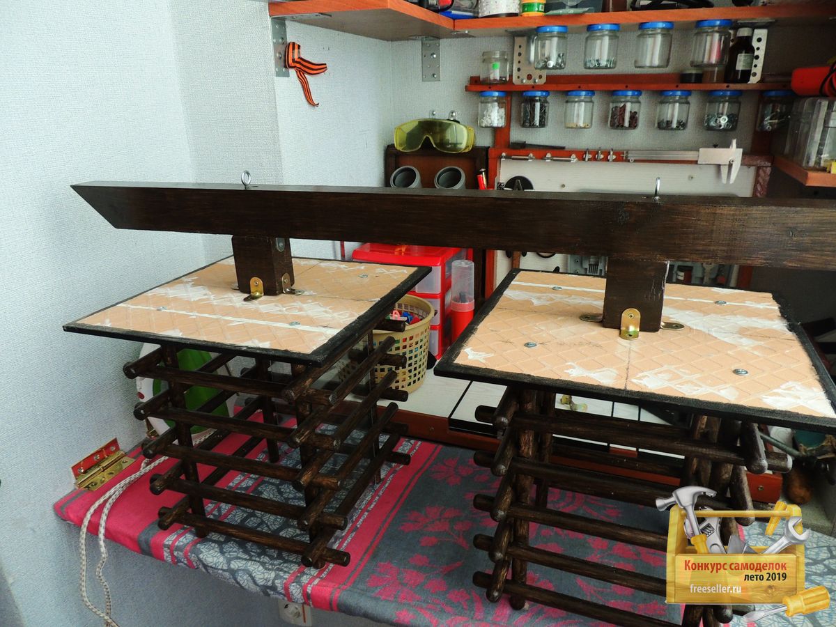 Далее при помощи столярного клея зафиксировал рейки. Изготовил две таких решетки.