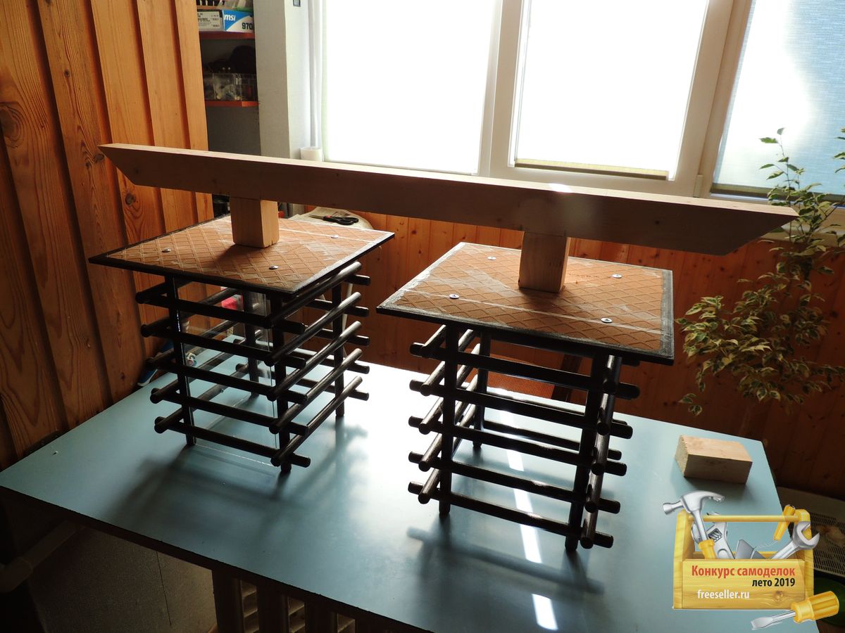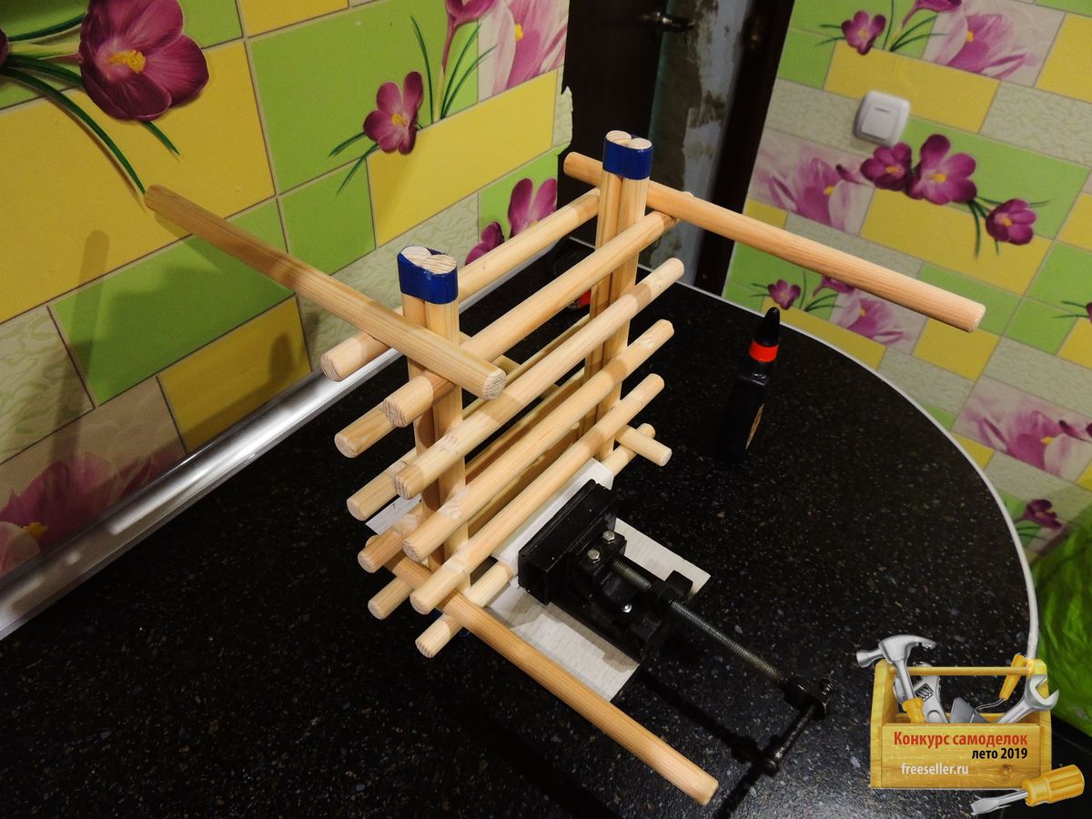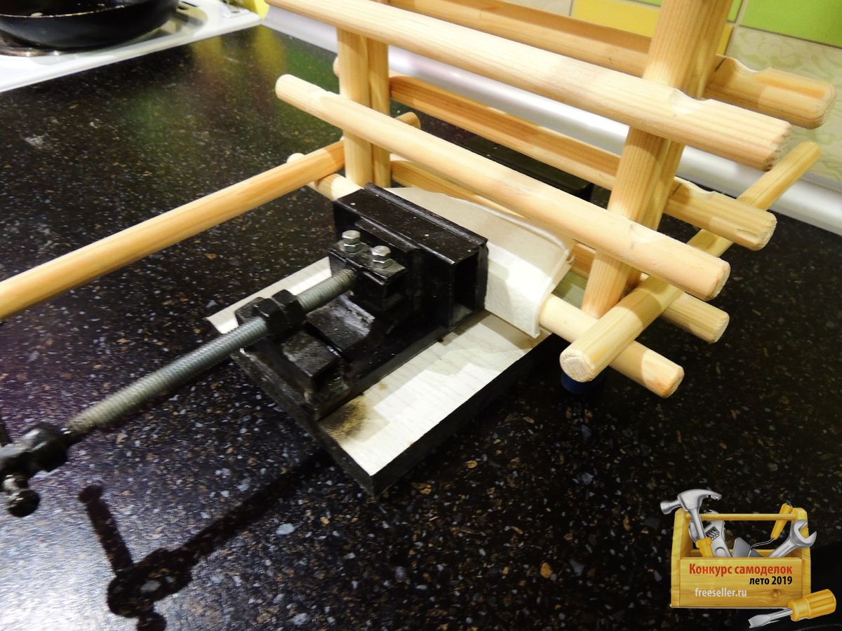 Затем зажал в тиски данную конструкцию, приклеил по одной рейке с каждой стороны.