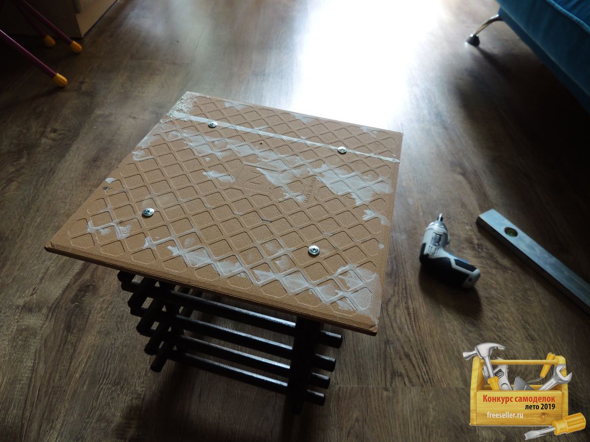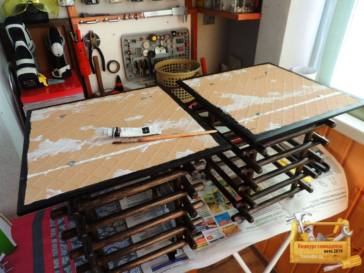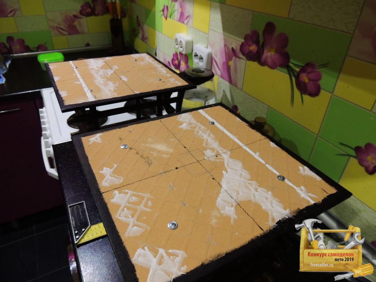 Получились две вот таких конструкции, края плиток закрасил черной краской.