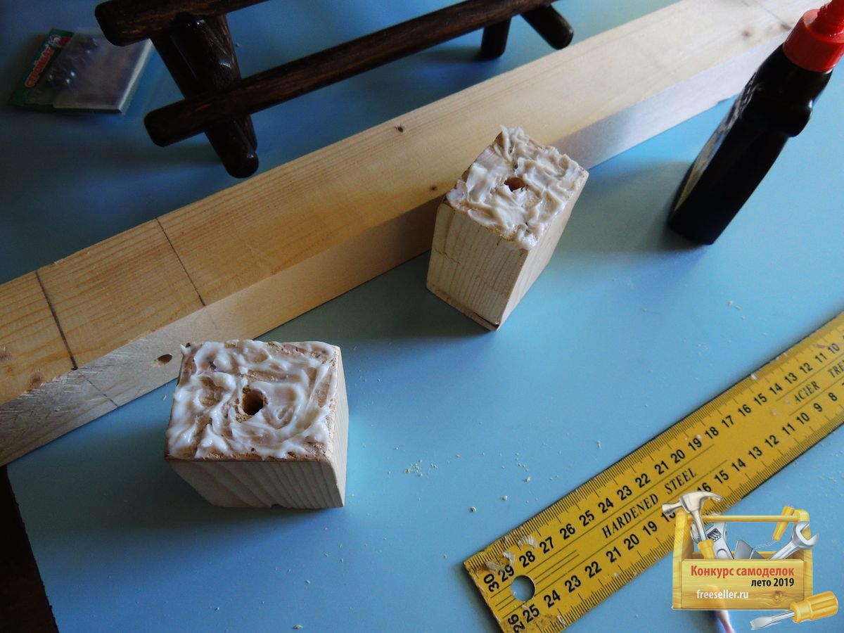 Для того чтобы все добротно смотрелось решил сделать небольшие вставки, отпилил два бруска по 7 см.