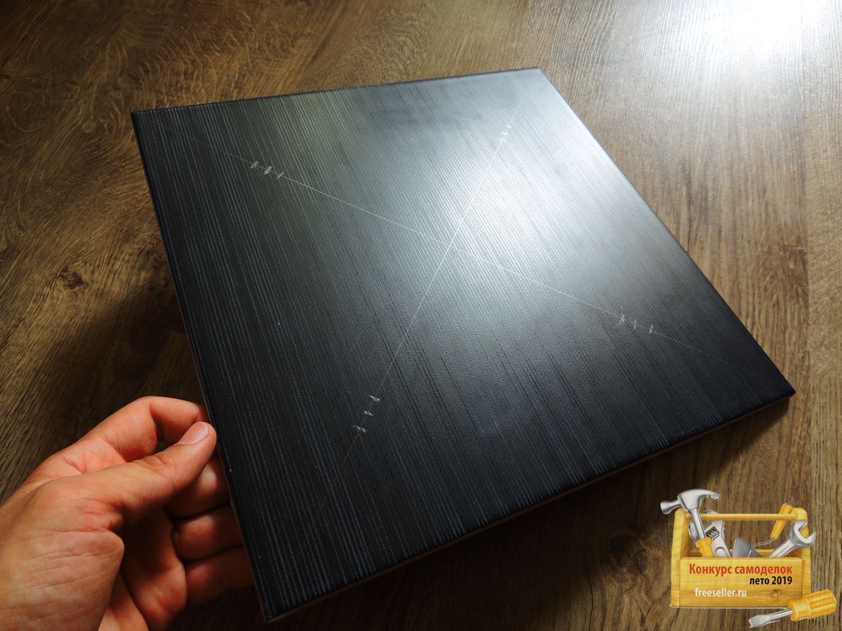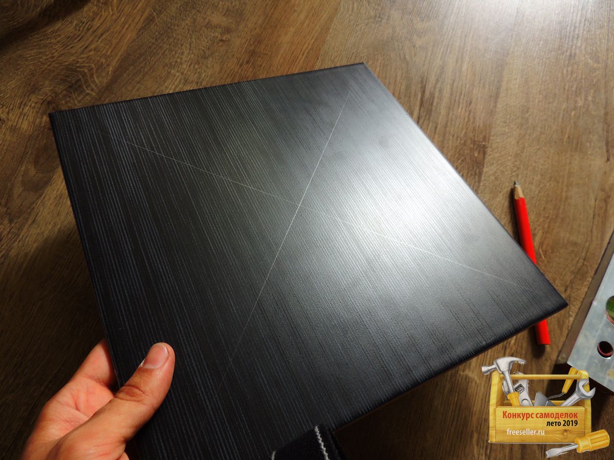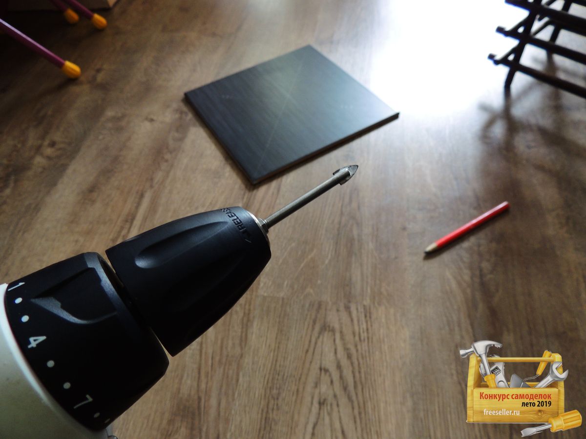 В качестве "крыши" светильника, решил использовать керамическую плитку 30*30 см, осталась после ремонта, жалко было выбрасывать, а здесь она как раз пригодилась.