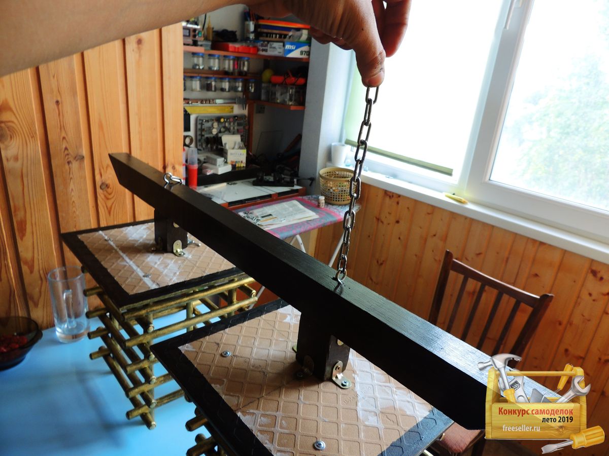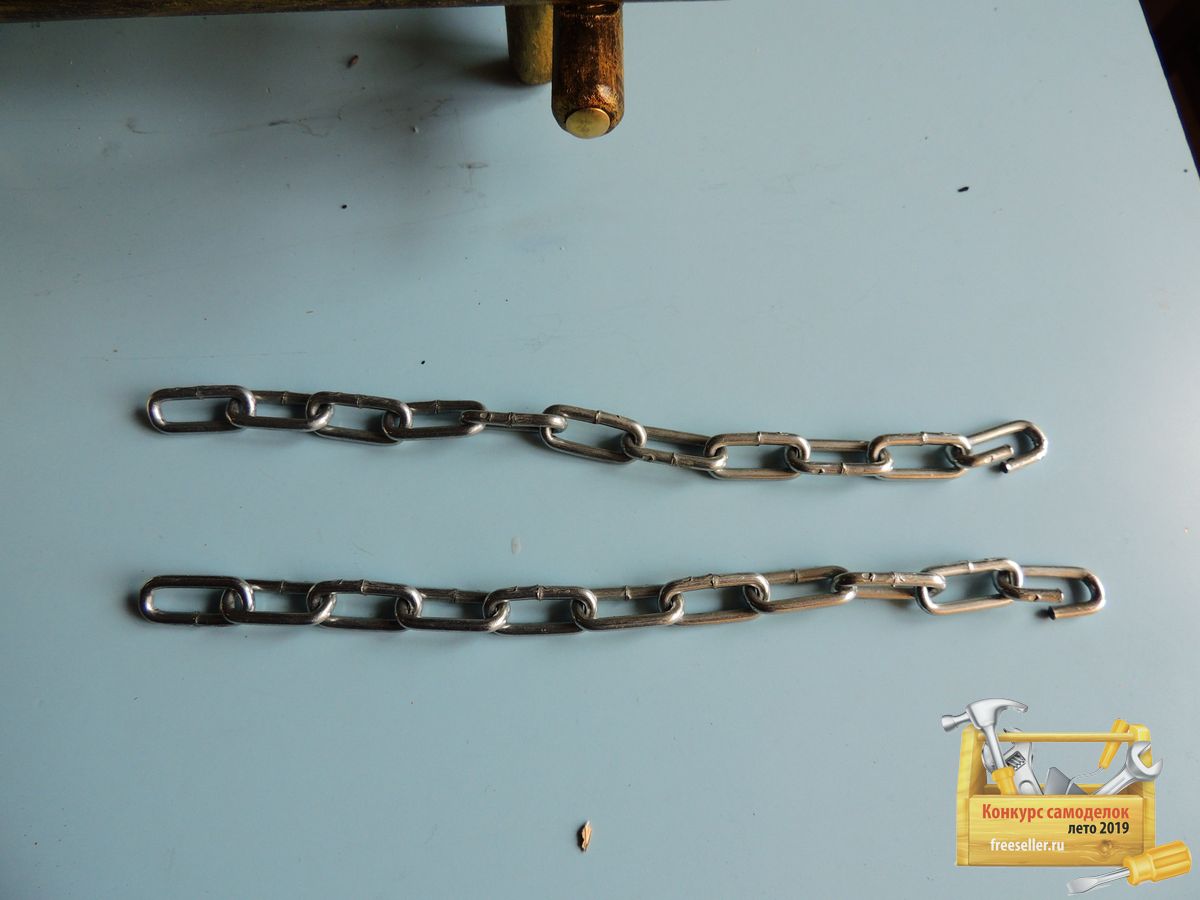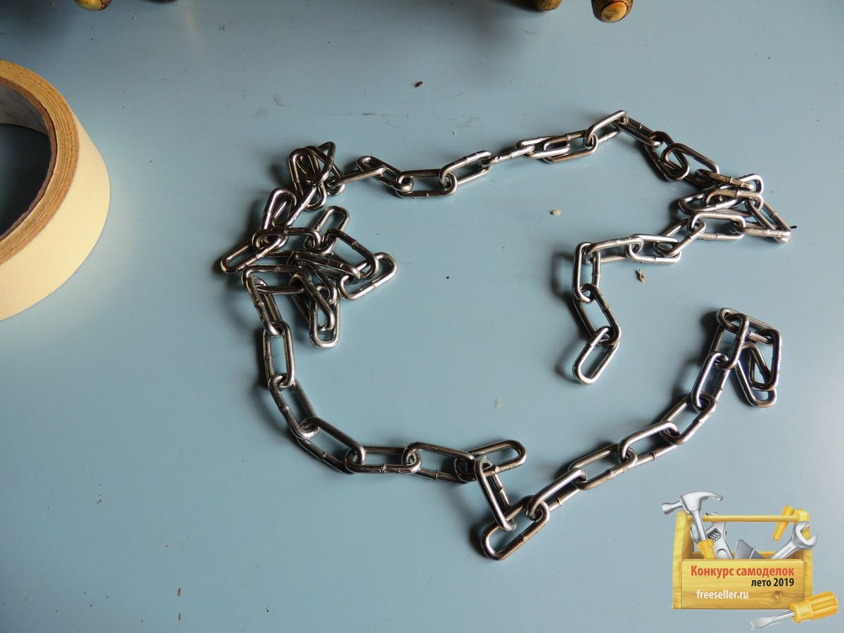 Осталась завершающая часть. Так как нужно было повесить светильник на определенную высоту, решил использовать цепь, отрезал нужную длину.