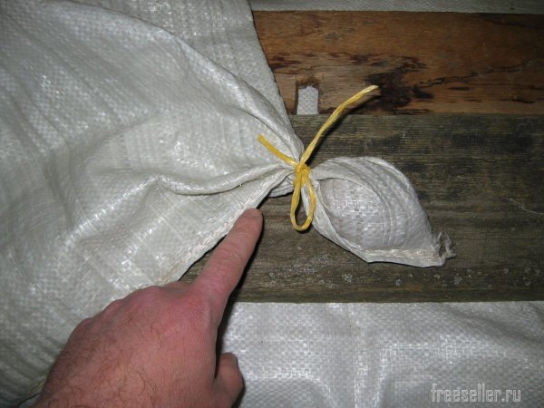 Главное, не забыть потом, когда мешок нужно будет высыпать, просто развязать завязку над картофелиной «рукояткой».