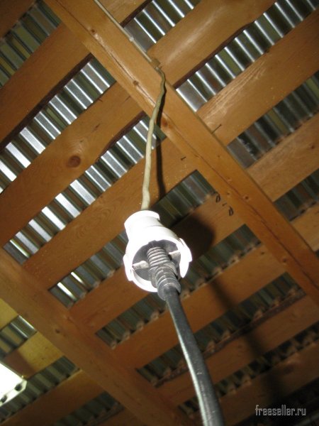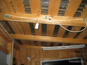 Так что подобное размещение удлинителя на потолке, является весьма удобным. Причем нужно отметить, что удобно это не только при обработке длинных заготовок, то есть когда приходится перемещаться с инструментом вдоль верстака, но и просто при работе в одном месте верстака с любым электроинструментом. И все из-за того, что провод инструмента всегда находится сзади на весу и не мешает в работе.