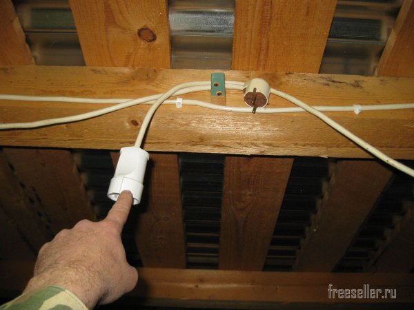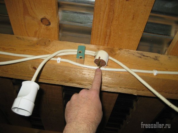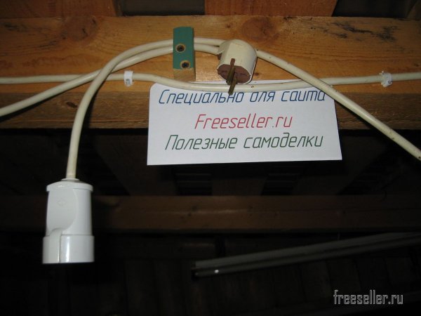Ну, а напоследок хочу сказать, что подобный принцип размещения или подвешивания удлинителя можно применять не только при работе в помещении, но и при работе на открытом воздухе.