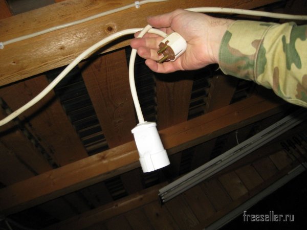 К этому концу, я подключаю вилку электроинструмента. Держится она, кстати, очень плотно и никогда не выпадает.