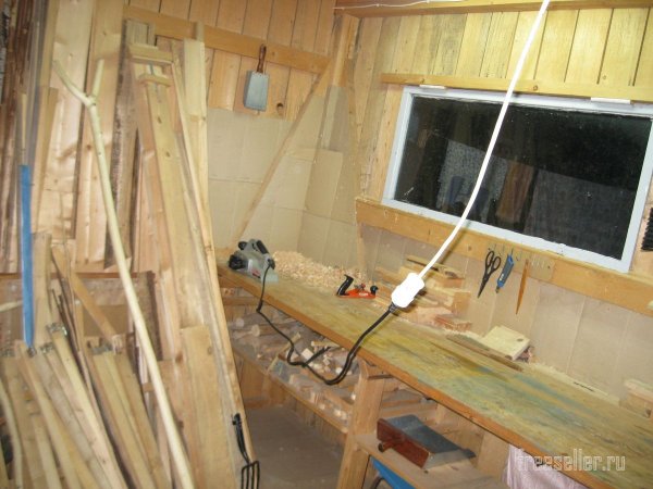 Среднюю часть этого удлинителя, я укрепил сбоку потолочной балки, над самым началом верстака.