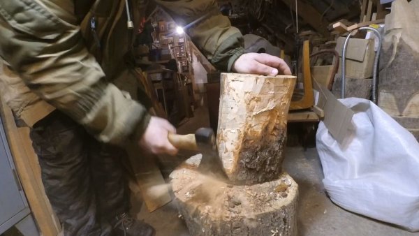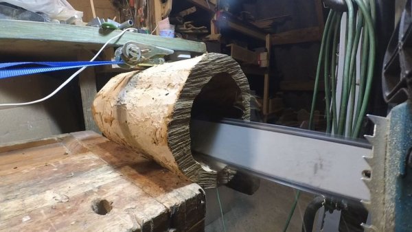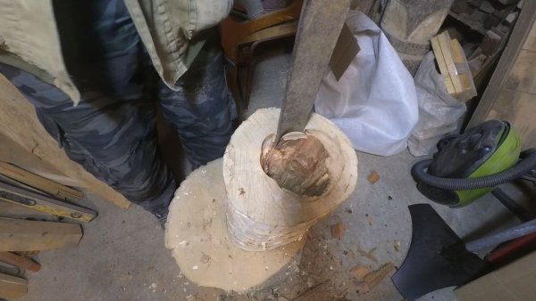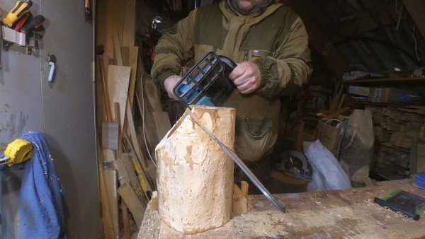 Цепной пилой добиваюсь требуемой толщины стенок.