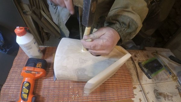 Убираю гниль и расширяю большой полукруглой стамеской.