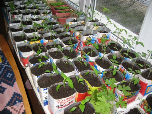 А поскольку рассады у нас довольно много, то постоянно приходится готовить для нее контейнеры. Мы в качестве контейнеров для рассады, используем в основном картонные пакеты из-под молока и сока, а также различные пластиковые емкости.