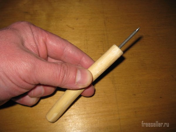 Это шило, я также сделал из отрезка проволоки. А чтобы данное шило было удобно разогревать на огне, то я сделал его достаточно длинным (где-то 30 см.).