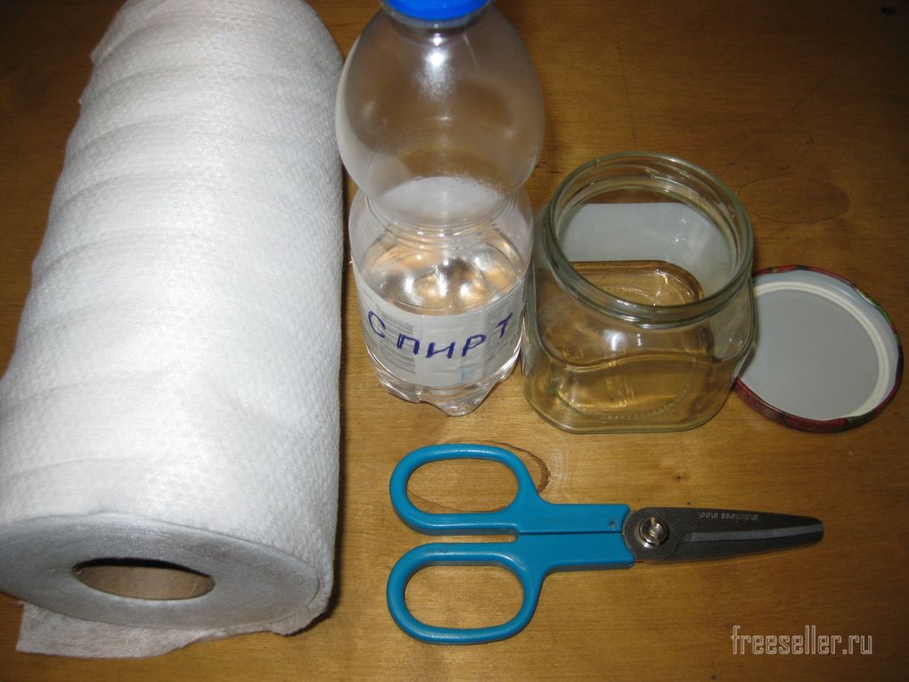Мне, конечно, повезло в этом плане, поскольку у меня имеется определенный запас (около литра) медицинского спирта. Однако далеко не у всех он есть. Но в этом случае совсем необязательно использовать именно этиловый питьевой спирт. Можно использовать и любой другой непитьевой спирт, или дезинфицирующую жидкость на его основе главное, чтобы она имел достаточную крепость.