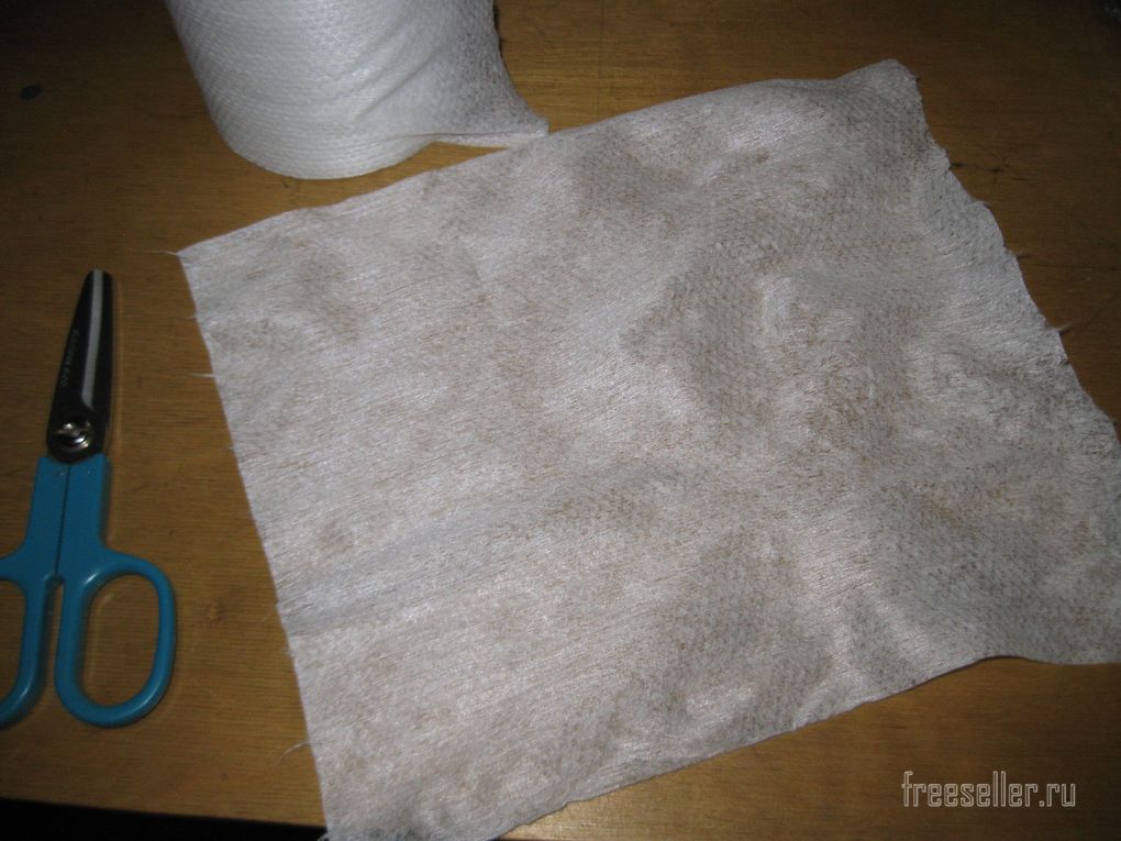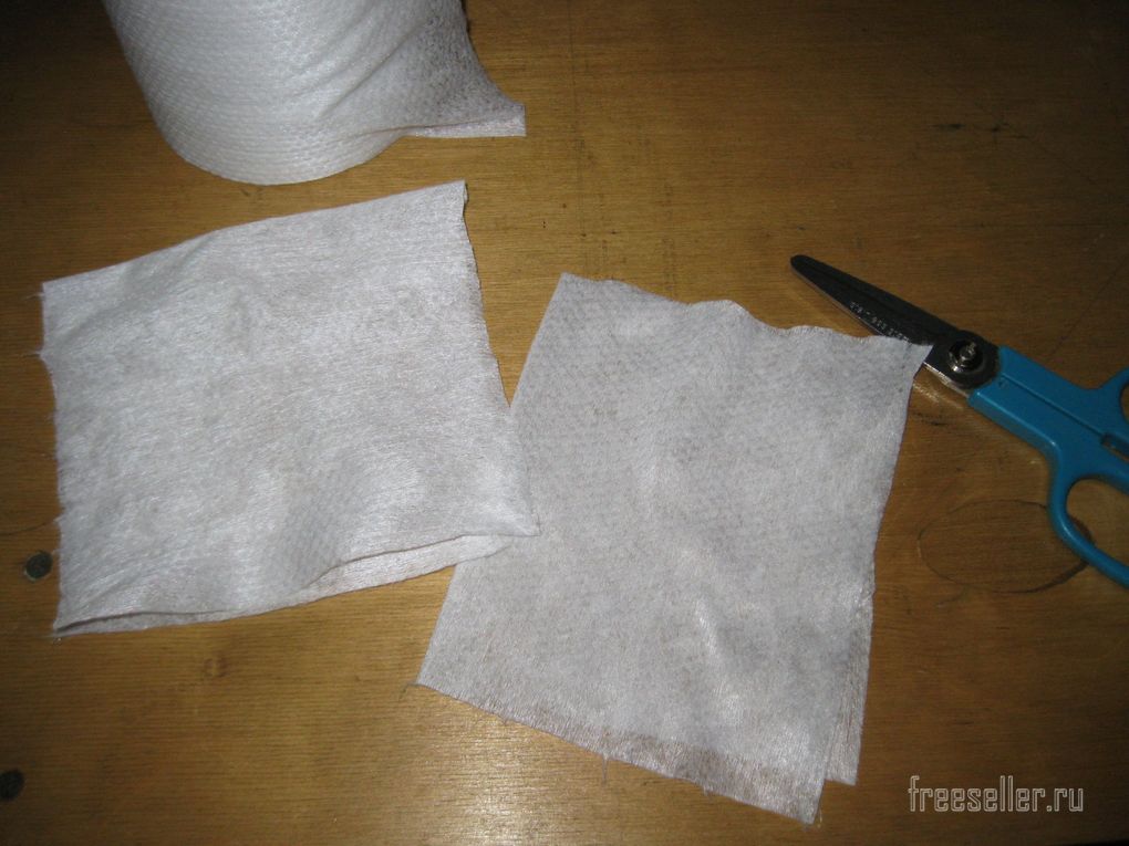 Для этого отрываем салфетку от рулона и, в зависимости от ее размера, дополнительно разрезаем ее ножницами на две или даже четыре части, получая, таким образом, несколько маленьких салфеток.