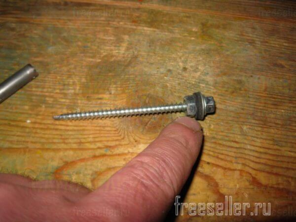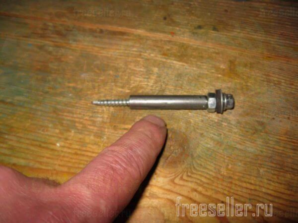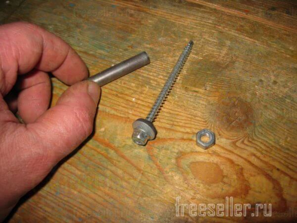 После этого, надел на саморез, который будет играть роль грузила, гайку и отрезок стальной трубки для большего утяжеления.