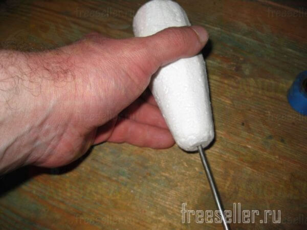 Затем шилом наколол центр будущего отверстия в нижней части этого поплавка.