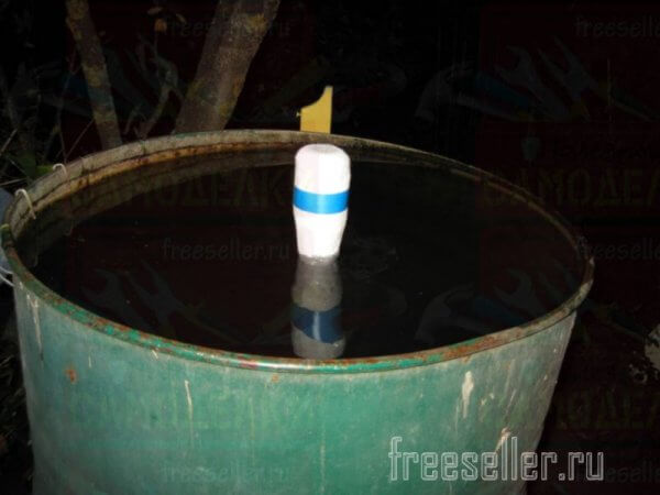 Прежде чем отдать этот датчик-поплавок соседке, я также как и прежний вариант, испытал его в своих поливочных бочках.