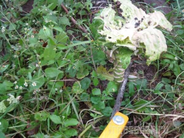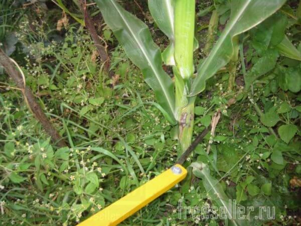 Так ножовочным полотном можно срезать толстые стебли лопуха, подсолнечника, топинамбура, кукурузы, капусты и т.п.