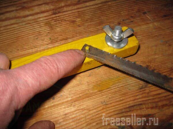 Для удобства работы, а также для того, чтобы не поранить руки, часть пилки можно обмотать тряпкой или же использовать специальную пластиковую рукоятку, которую можно купить в хозяйственном магазине.