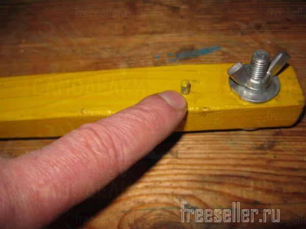 На этой штанге имеется вот такой штифт, диаметром примерно 3,5 мм, который и помог мне установить на нее ножовочное полотно без всякой доработки.