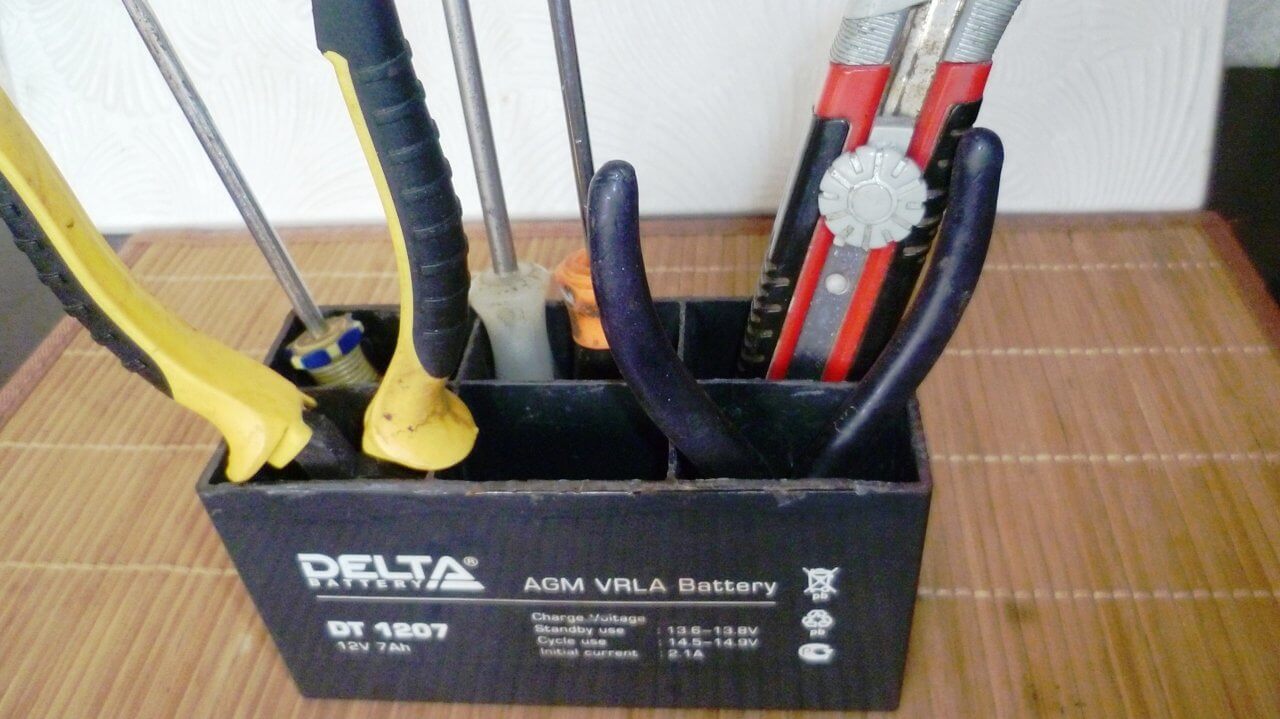 Из старого аккумулятора можно сделать очень полезную самоделку для мастерской. Первым делом у АКБ нужно срезать верхушку, затем зачистить все заусенцы и покрасить. В итоге из старого аккумулятора может получиться отличный органайзер для различных мелких вещей, что бы они не валялись на верстаке, а были все в одном месте! Подробнее в видео Что можно получить из старого аккумулятора.
