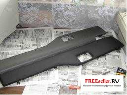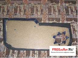 В качестве мягкого материала под ткань и дермантин взял изолон, оставшийся от шумоизоляции. Один большой кусок вырезал по всему контуру панели и два кусочка по форме декоративных накладок. Эти накладки решил просто пришить к тканевой основе, подложив изолон. В какой последовательности чего и как пристрачивать не спрашивайте, не смогу на пальцах объяснить, а фотки этого процесса не сделал. Сшитую обшивку тонким слоем клея, чтоб он насквозь не пропитал ткань, приклеиваем поверх изолона, изолон уже приклеен к оргалиту. После долгих мучений получилось вот что.