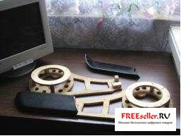 Каркас подиума вырезал из фанеры толщиной 10мм. Для облегчения понаделал много дырок. По правильному, углы установки динамиков нужно подбирать долго и упорно, экспериментальным путем. Но делать призовую установку я не собирался, а "вырулить" сцену намеревался в дальнейшем с помощью пищалок, что вполне допустимо. Поэтому форма и угол наклона были выбраны на глазок.