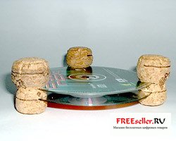Идея понятна из фотографий. Берем три пробки и два CD (я взял первые попавшиеся диски из коробки «CD Trash» у себя на работе, но, в принципе, диск можно выбрать с очень эффектной картинкой - экспериментируйте).
