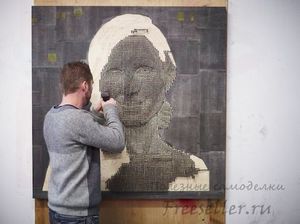 Художник, Эндрю Майерс из Калифорнии рисует необычные картины. Его инструмент не кисть, а шуруповёрт. Полотно он обклеивает страницами из телефонной книги, делает набросок и вкручивает от 8 до 10 тысяч саморезов, создавая, таким образом, настоящие произведения искусства....